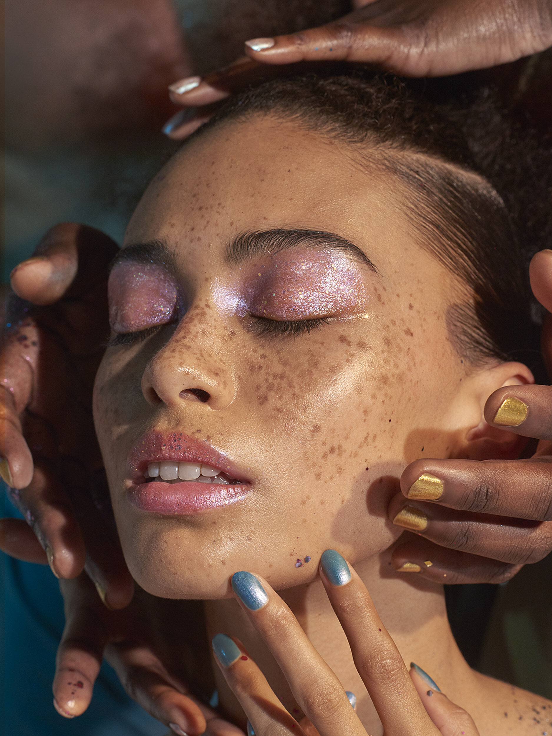 A sustainable beauty-led fashion story highlighting the joy of using eco-friendly biodegradable glitter.